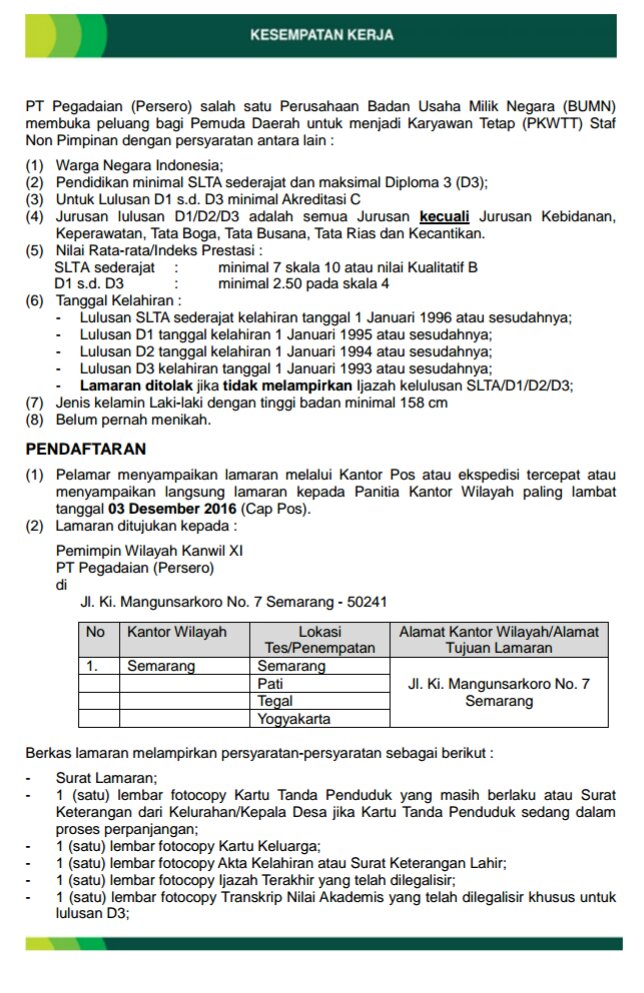 Lowongan Pekerjaan PT. Pegadaian (Persero)