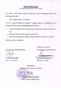 June 23, 2016 Pengumuman tentang Pelaksanaan Ujian KPTA untuk Program Studi D3 Manajemen dan D3 Akuntansi Baca selengkapnya