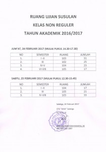 February 23, 2017 Jadwal Ruang Ujian Susulan Kelas NonReguler Th. Akademik 2016/2017 Baca selengkapnya